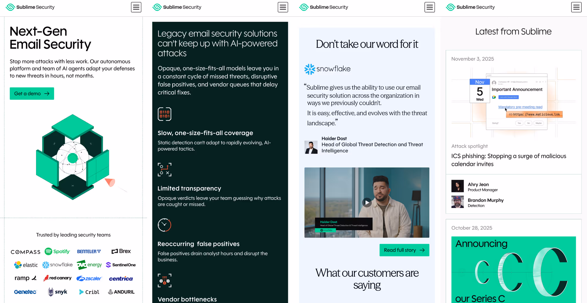 Sublime Security came to us at a crucial time. With a refreshed brand, major visibility in the cybersecurity space and an upcoming Series C announcement, their website needed to reflect the momentum and maturity of the company, and quick.